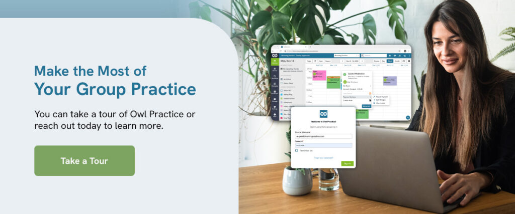 You can take a tour of Owl Practice or reach out today to learn more. We are happy to help you see how our platform can simplify your group practice operations.
