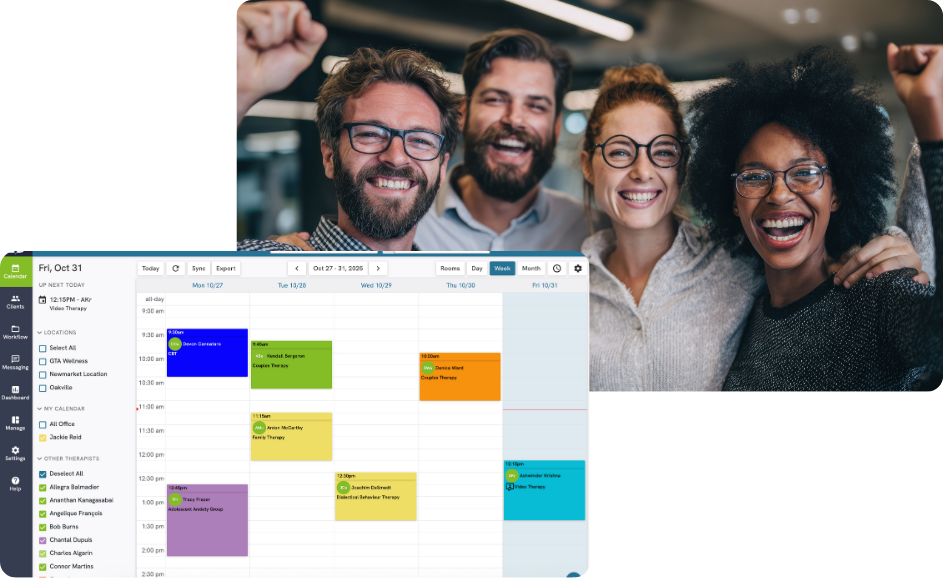 Organize your group-owned therapy practice management to ensure clarity and control with features like multi-therapist calendars, role-based access, and automated reminders. Â