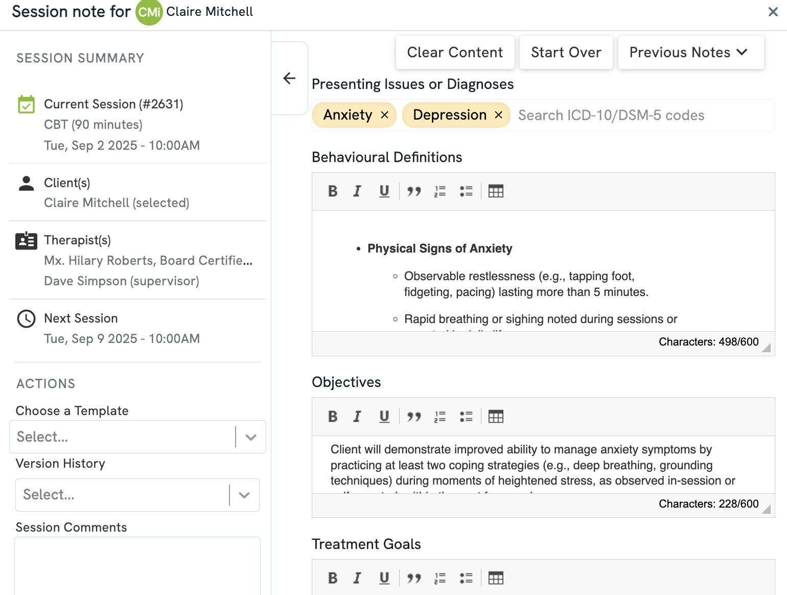 The difference is exemplified in everything from clinical documentation templates to supervision tools to how client relationships are tracked over time. When software is built for mental health first, it works the way you think — not the way a physiotherapy clinic thinks.